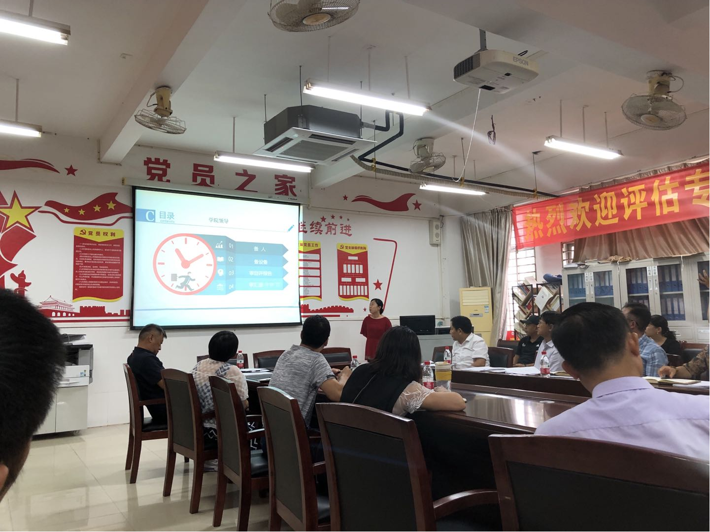 紧接着,由外国语学院马院长做了去年本科评估顺利通过的宝贵经验分享报告。马院长介绍了三点经验,第一,分工明确,落实第一责任人。第二,全体教师团结一致,互相配合。第三,紧盯第一指标责任人,以上率下,亲历亲为。最后,由理学院的系主任做了评估工作的具体操作步骤介绍。她介绍了四点经验。第一,备好人马。第二,备好设备。第三,审好自评报告。第四,审好PPT。