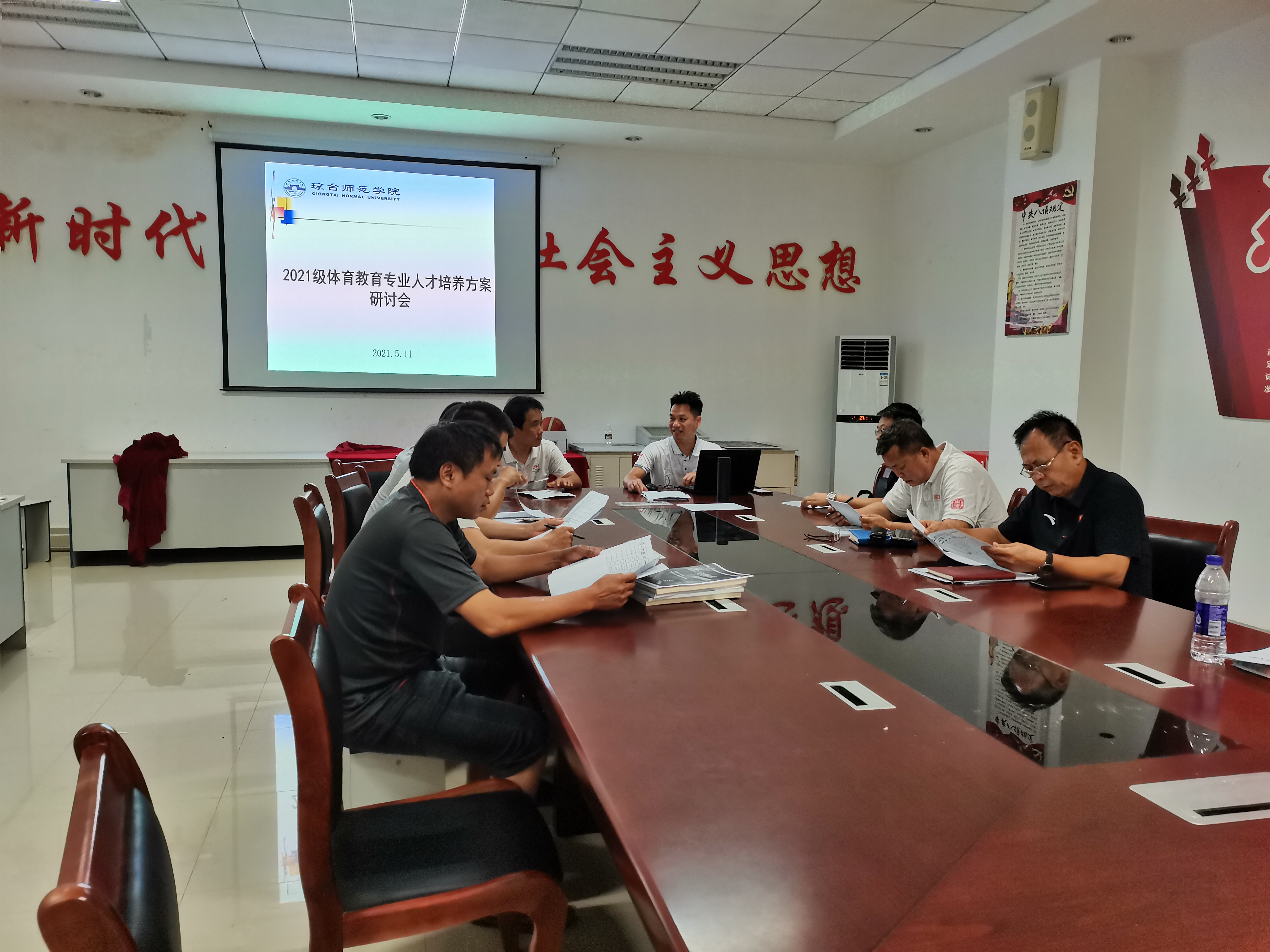 2021年5月11日下午,体育教育系在党员活动室开展2021版体育教育专业人才培养方案研讨会。云颖院长、符传嘉书记、刘强副院长、体育教育系周军主任、范乾辉副主任以及相关教师参加了研讨。