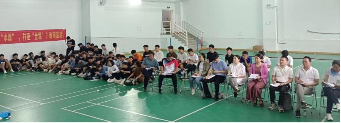 为深入学习贯彻全国教育大会及《中国教育现代化2035》等会议、文件精神,坚持立德树人根本任务,落实“以本为本、四个回归”要求,形成互相学习、取长补短、共同提高的良好氛围,引导全院教师淘汰“水课”、打造“金课”,促进教师在教研中提升,在研究中成长,全面提高学院教师教育教学能力与水平。体育学院按照《体育学院2022—2023学年第二学期教研活动方案》(体育学院教务〔2023〕7号)工作安排,2023年4月26日(星期三)上午第3节,在羽毛球馆进行了由谢家民老师执教的公开课教学活动。参加公开课的领导和老师有学校教学质量监测与评估中心副主任王康妹、学校教学督导员吴小玲、体育学院党总支书记符传嘉、体育学院副院长周军以及专业教学团队部分教师,另外两个班级全体学生也参与了听课活动。