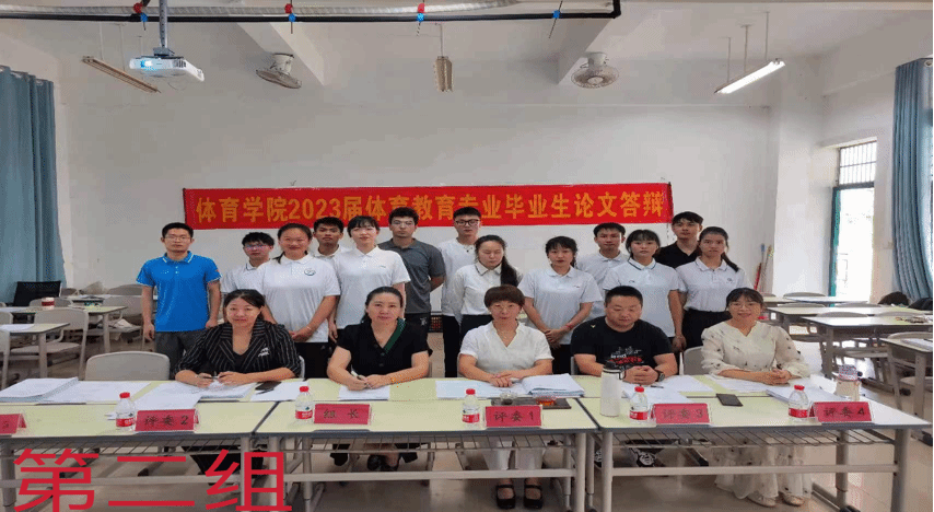 根据学校2023届本科毕业生论文答辩整体安排,5月7日体育学院体育教育系分别在综合楼A201-205、A301-305开展体育教育专业毕业生论文答辩会。参与本次答辩的相关人员有体育学院论文指导导师47人、学生助理40人、2023届体育教育专业134名毕业生,有6名学生因在省外考编未能回校,故参加线上答辩,其余128名毕业生参加线下答辩。