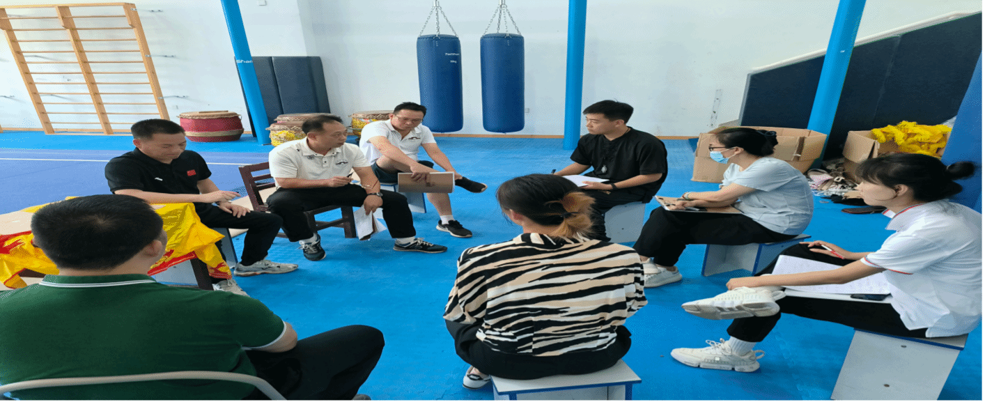 为深入学习贯彻全国教育大会及《中国教育现代化2035》等会议、文件精神,坚持立德树人根本任务,落实“以本为本、四个回归”要求,形成互相学习、取长补短、共同提高的良好氛围,引导全院教师淘汰“水课”、打造“金课”,促进教师在教研中提升,在研究中成长,全面提高学院教师教育教学能力与水平。体育学院按照《体育学院2022—2023学年第二学期教研活动方案》(体育学院教务〔2023〕7号)工作安排,于 2023 年 6 月 1 日(星期四)上午第四节,在武术馆进行孙一帆老师的公开课活动。参加公开课的领导和老师有体育学院党总支书记符传嘉、体育学院副院长周军、体育学院副院长贺昆以及部分教师。