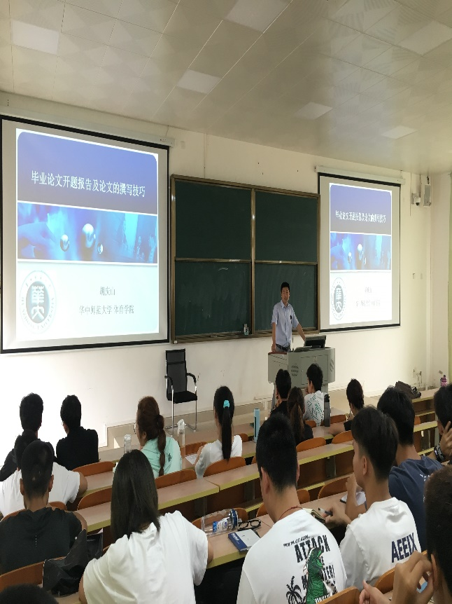 2021年4月20日,体育学院有幸邀请到华中师范大学博士生导师胡庆山教授给体育学院师生做关于本科生毕业论文的专题讲座。上午,胡庆山教授首先是针对2022届体育教育专业本科生,在文C303阶梯教室开展《毕业论文开题报告及论文的撰写技巧》专题讲座。胡教授通过三个方面为学生进行讲述:1.毕业论文完成的基本程序;2.开题报告的撰写方法;3.论文撰写的注意事项。