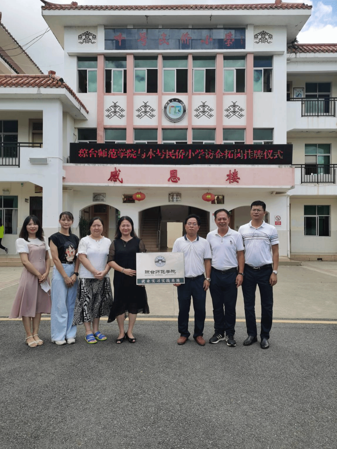会后,调研小组前往陵水中山小学、陵水本号民侨小学、陵水民大附中陵安实验小学进行实地调研。通过召开座谈会,与会双方还就毕业生能力素质培养要求、培养过程衔接、高校教育教学方式以及学生实习就业期的生活、住宿、薪资等方面进行了深入交流。双方关于就业实习实践基地合作事宜达成共识,会后举行了实习就业基地挂牌仪式,并签订了实习就业基地协议书。