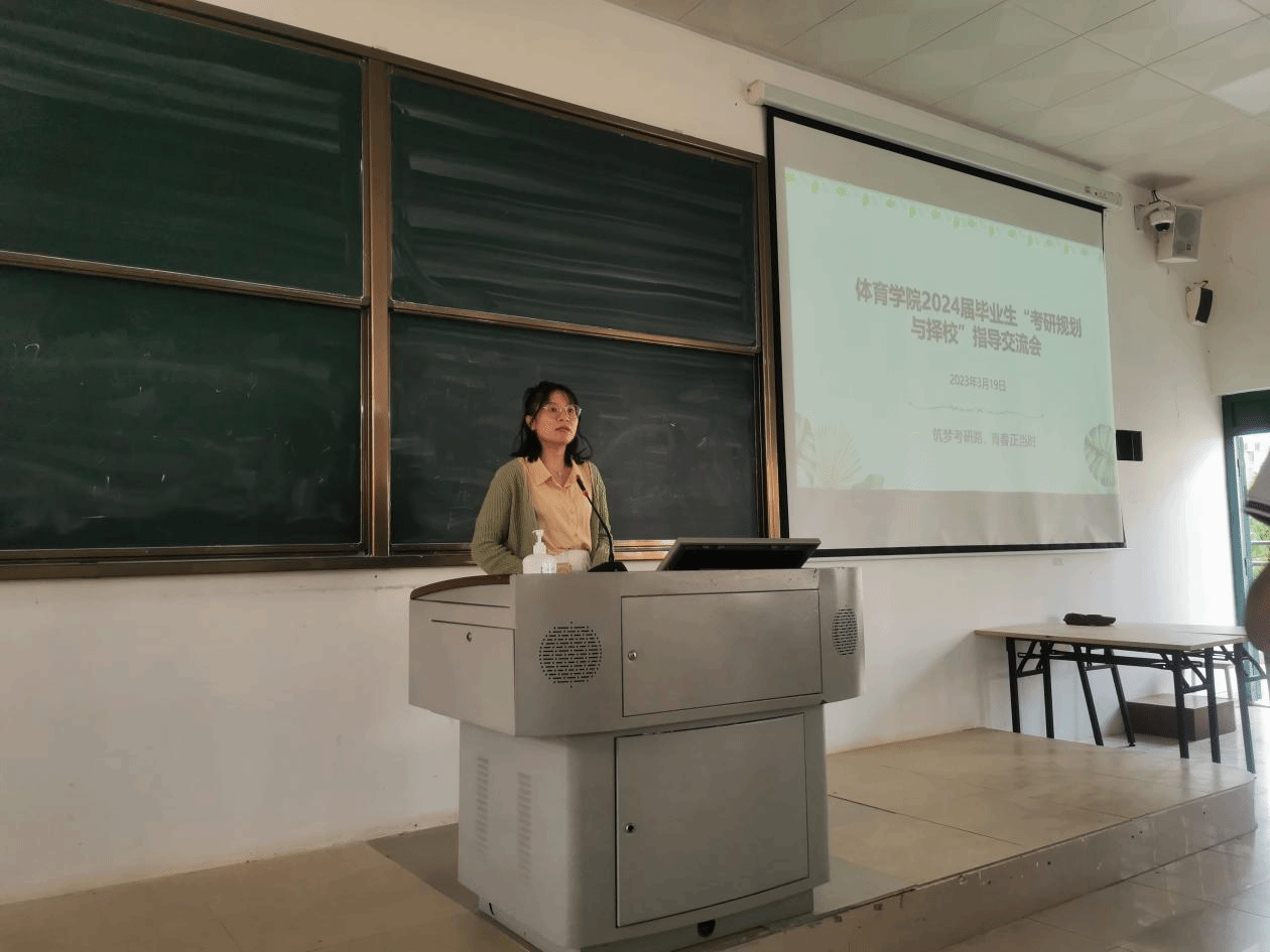 为激发体育学子的考研热情,明确考研目标,增强备考信心,掌握备考技巧。3月19日下午16:00,体育学院在文C203阶梯教室举办了2024届毕业生“考研规划与择校”指导交流会。体育学院党总支书记符传嘉、辅导员尹丽、辅导员羊芳芳及部分2024届毕业生同学参加交流会。本次交流会邀请到体育学院张小宝老师为同学们做考研交流指导。