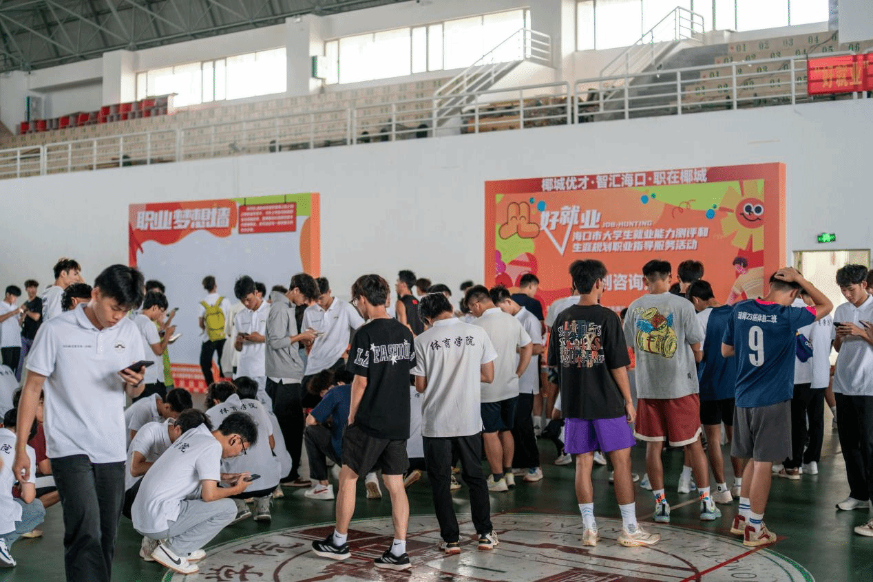 为了帮助大学生更好地适应大学生活,明确职业发展方向,提升职业规划意识和能力。在中共海口市委人才发展局、海口市人力资源和社会保障局、海口市人力资源开发局、海口市人才劳动力交流服务中心等部门的大力支持下,2024年11月2日下午15:00,体育学院在体育馆举办就业能力测评与职业生涯规划职业指导服务活动,此次活动采用大型户外游戏式、闯关式体验形式,包含生涯唤醒、自我探索、摘下璀璨星辰、跳出决策风格、扔下包袱、积极赋能等六个活动主题,让学生在参与中探索自我和外部世界。