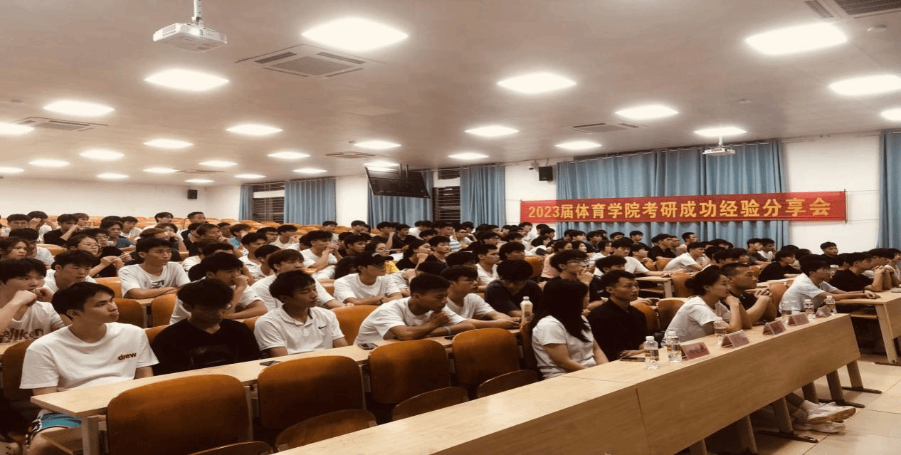 4月20日,体育学院在文科楼C201组织召开2023届体育学院考研成功经验分享会。体育学院副院长贺昆、体育教育系副主任范乾辉、张小宝老师、2022级体教1-3班、2022级休闲体育1-2班所有同学,2020级、2021级、2022级体教4-6班(专升本)计划考研的同学将近200人参加分享会。本次分享会特邀2019级体育教育罗敏、周俊池、2021体育教育3班(专升本)何乃强共3位同学分享考研成功经验,会议由体育教育系副主任范乾辉老师主持。