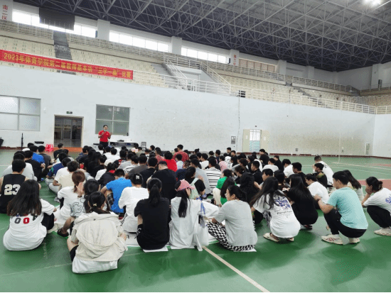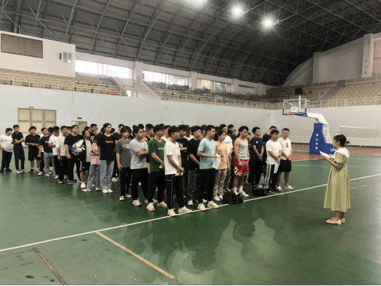 2023年5月8日上午10:30,体育学院在体育馆召开2023届毕业生全体大会。体育学院党总支书记符传嘉、辅导员尹丽和2023届全体毕业生参加本次会议。
