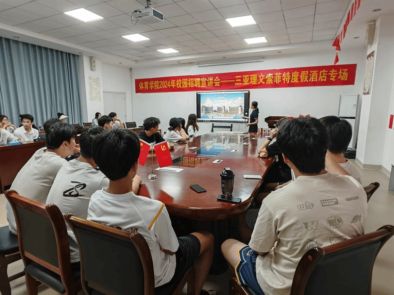 为全面推进2024届毕业生就业工作,体育学院于2024年3月28日下午16:20于体育学院党建办公室,开展三亚理文索菲特度假酒店专场校园招聘宣讲会。本次宣讲会由就业辅导员许晓倩主持,索菲特度假酒店人事经理宋小珍作为宣讲嘉宾,体育学院2021级学生以及2024届毕业生参加了本次宣讲会。