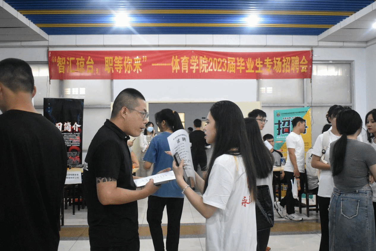 为做好毕业生就业工作,搭建毕业生与用人单位洽谈交流平台,促进毕业生充分就业。2023年5月9日下午,体育学院在琼台师范学院桂林洋校区体育馆组织开展“智汇琼台,职等你来”2023届毕业生专场招聘会。本次招聘会旨在抢抓关键时间,促进学院毕业生就业,进一步搭建用人单位与毕业生之间的对接桥梁。