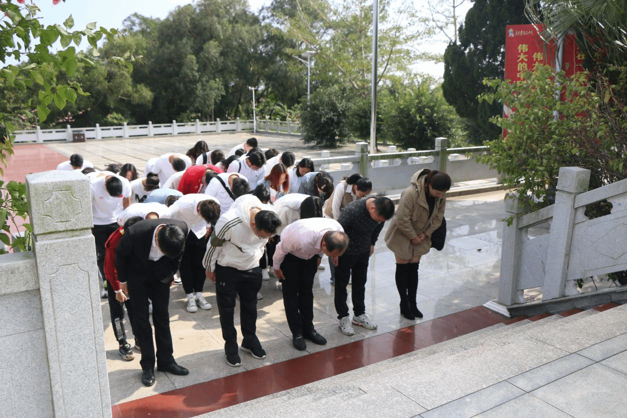六连岭是万宁县的抗日革命根据地与解放战争根据地,经过了23年艰苦卓绝的斗争,才最终得到了解放。我们脚下的每一寸土地都是我们的革命先辈抛头颅、洒热血坚守下来的。全体党员首先在革命烈士纪念碑前进行了1分钟的默哀,表达对于烈士们沉痛的悼念与哀思。全体党员和入党积极分子依次缓步绕行,深情瞻仰烈士纪念碑,敬献鲜花,寄托对英烈的深切缅怀和崇高敬意,将承载敬意与哀思的花整齐地摆放在纪念碑前。