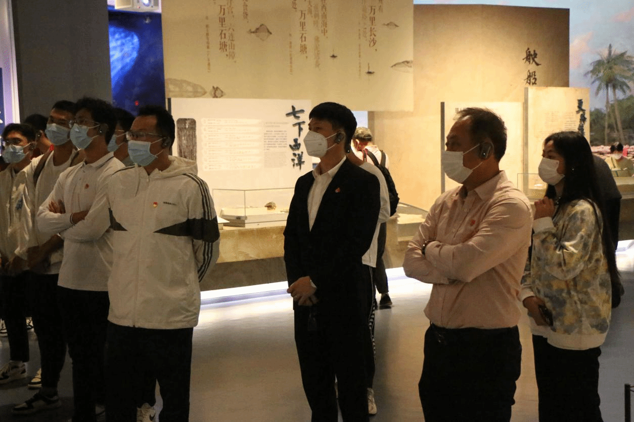据讲解员介绍,馆内现有各类藏品8万多件,包括历代外销文物、南海 生物标本、海南历史文物、历代船模等。馆中建有文物保护和修复中心、现代化的化学实验室、分析检测室、精密分析仪器室、出水文物保护修复实验室、器物修复室、书画修复室等硬件设施,为文物的保护和研究提供重要保障。全体党员到达南海博物馆后,跟随讲解员参观了“南海人文历史陈列馆”和“八百年守候-西沙华光礁号沉船特展”。