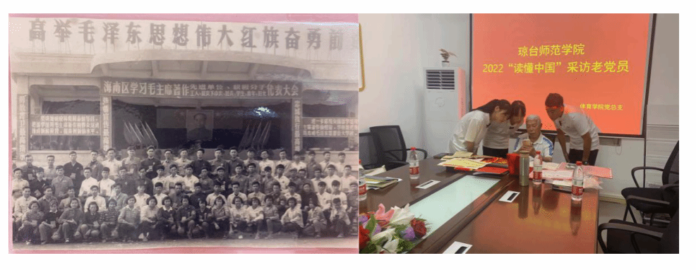 体育学院深入学习习近平总书记在海南考察时的重要讲话精神树立“青春心向党、建功自贸港”的坚定信念,坚决捍卫“两个确立”、坚决做到“两个维护”,解放思想、开拓创新、团结奋斗、攻坚克难,体育学院学生党员以实际行动回报总书记和党中央的关怀与厚爱,通过采访本地、本校“五老”(即老战士、老干部、老专家、老教师、老劳模)中的先进典型,突出海南元素、琼台元素,彰显海南特色和琼台特点,教育广大学生对海南革命和社会主义建设,筑牢理想信念之基,听党话跟党走,成长为堪当时代重任的时代新人,为海南自贸港建设作贡献。