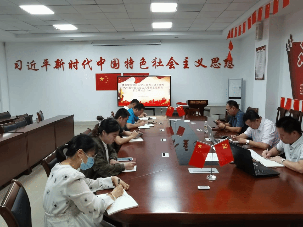 2023年5月15日上午10:00,体育学院党总支在党建办公室组织开展学习贯彻习近平新时代中国特色社会主义思想主题教育专题研讨会,参加本次研讨会的有体育学院党总支书记符传嘉、体育学院院长云颖、体育学院副院长周军、教工党支部书记符智勇、学生党支部书记尹丽、教工支部支委刘坤翔、学生支部支委李光洪、辅导员许晓倩。