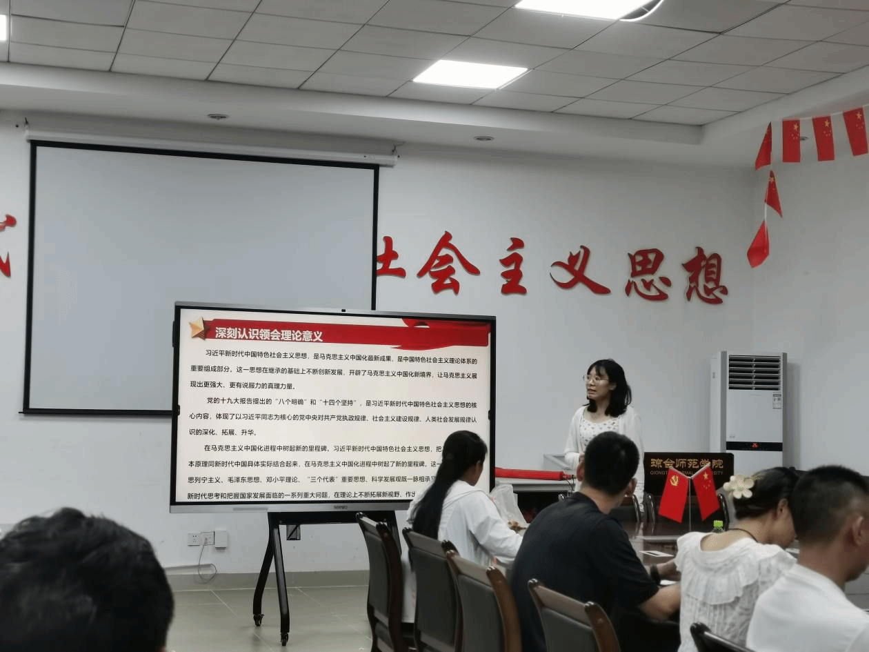 学生支部书记尹丽同志带领全体党员深入学习领会学习习近平新时代中国特色社会主义思想的理论意义、实践意义和世界意义。