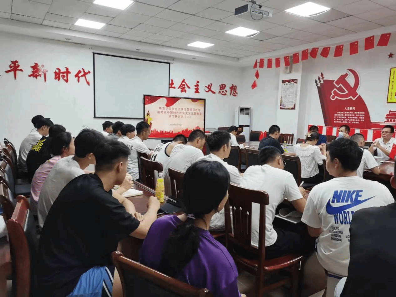2023年5月17日中午12:00,体育学院党总支在党建办公室组织开展学习贯彻习近平新时代中国特色社会主义思想主题教育第二次专题学习,本次会议以线上线下相结合的方式,线下38人参会,线上53人参会。会议由体育学院党总支书记符传嘉主持。