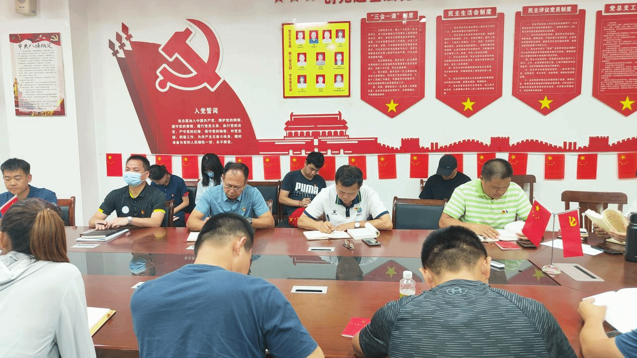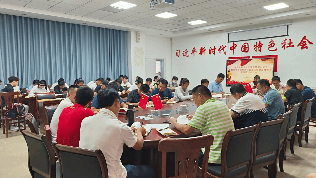 2023年5月31日下午16:00,体育学院党总支在党建办公室组织开展学习贯彻习近平新时代中国特色社会主义思想主题教育专题研讨会,参加本次研讨会的有体育学院党总支书记符传嘉、体育学院院长云颖、体育学院副院长周军以及体育学院党总支全体党员。