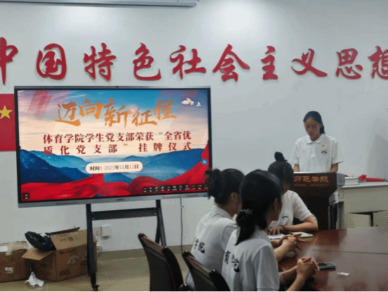 2025年11月11日,体育学院学生党支部“全省优质化党支部”挂牌仪式在学院党员活动室隆重举行。学院党委书记贺昆、支部全体党员及学院部分入党积极分子参加仪式,共同见证这一具有里程碑意义的重要时刻。此次获评“全省优质化党支部”培育建设单位,标志着我院基层党建工作取得了突破性进展。
