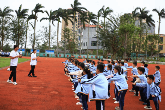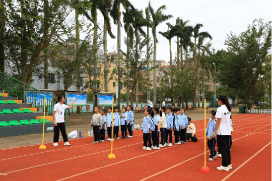 为深入贯彻落实“立德树人”根本任务,探索体育教育与思政教育深度融合的创新路径,2025年11月6日下午,琼台师范学院体育学院组织师生前往桂林洋中心小学,成功开展了一场以“体魄·德行·梦想”为主题的体育思政精品课程支教实践活动。本次活动将大学课堂延伸至小学操场,为小学生们带来了一系列意蕴深长的体育课,展现了体教融合的独特魅力。
