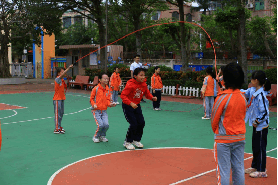 《"绳"采飞扬,同心共跃:跳动中的集体乐章》课程热火朝天。学生们在长绳接龙中,不仅要掌握跳跃的节奏,更要学会相互配合、彼此信任,是追求个人的"灵活",还是成就集体的"默契",孩子们在起落之间谱写着团结的乐章。
