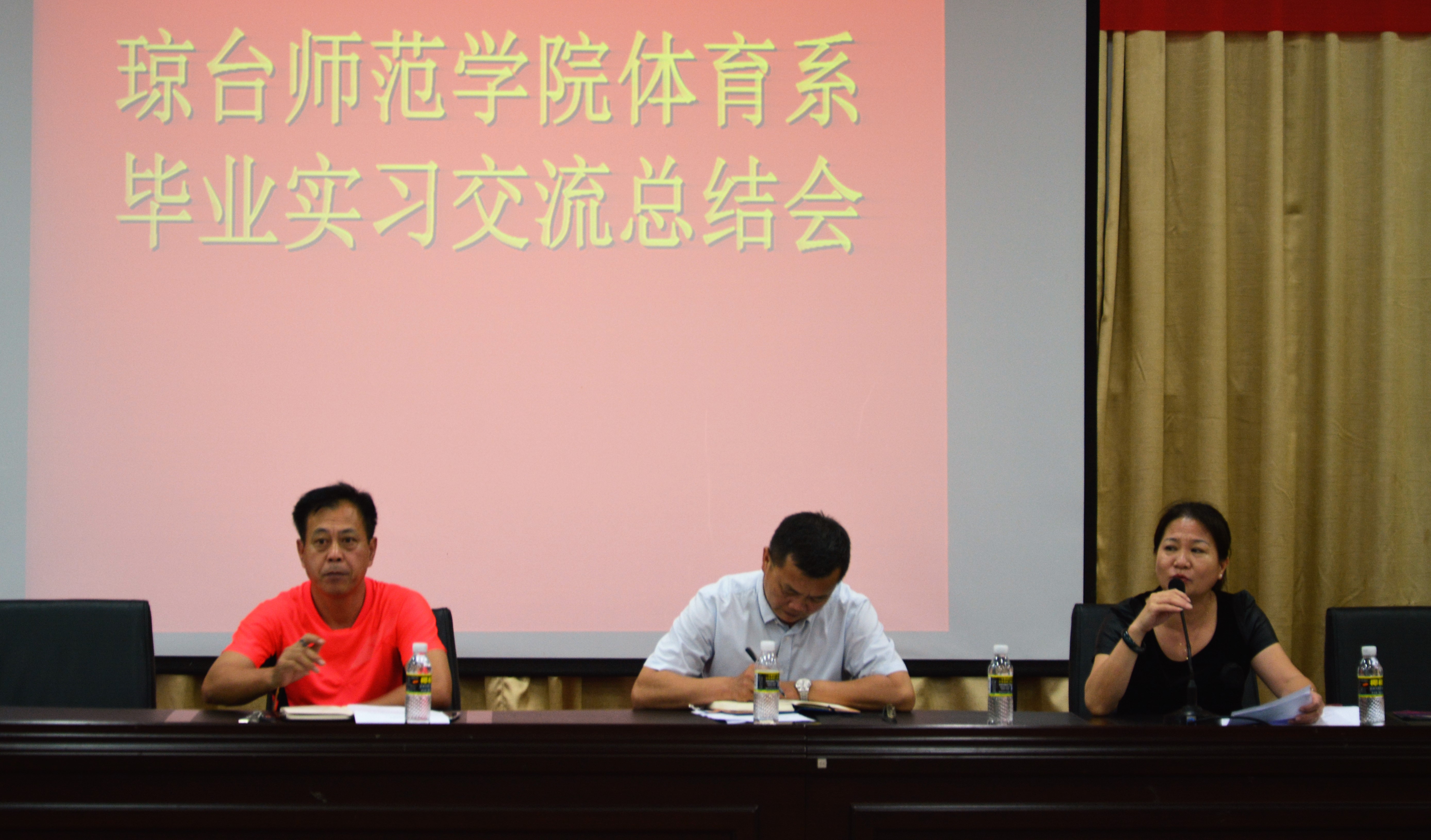 2017年3月14日下午,我系在文C202报告大厅召开体教专业毕业生实习交流总结大会。参加本次大会的领导和老师有:云颖主任、符传嘉书记、王彦旎副主任、各实习点带队老师、辅导员、参会班级班主任以及体教专业全体毕业生、2015体教专业、2013(五)体育教育班的同学,会议由王彦旎副主任主持,会议按照流程逐项进行。
