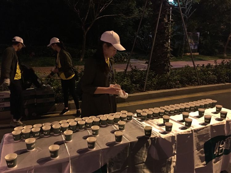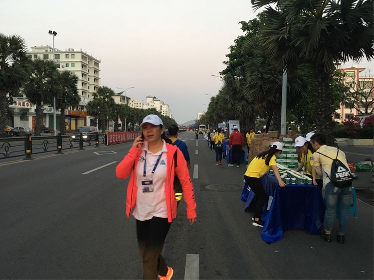 马拉松裁判员和志愿者在凌晨5点左右就开始工作