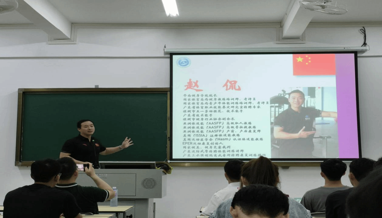 3月30日晚19:30,华南健身学院院长赵侃在实验楼D403为体育学院学生做题为“体育生就业指导与职业规划”的精彩讲座,体育学院贺昆副院长出席此次讲座活动,活动由体育学院体育教育系主任范乾辉老师主持。