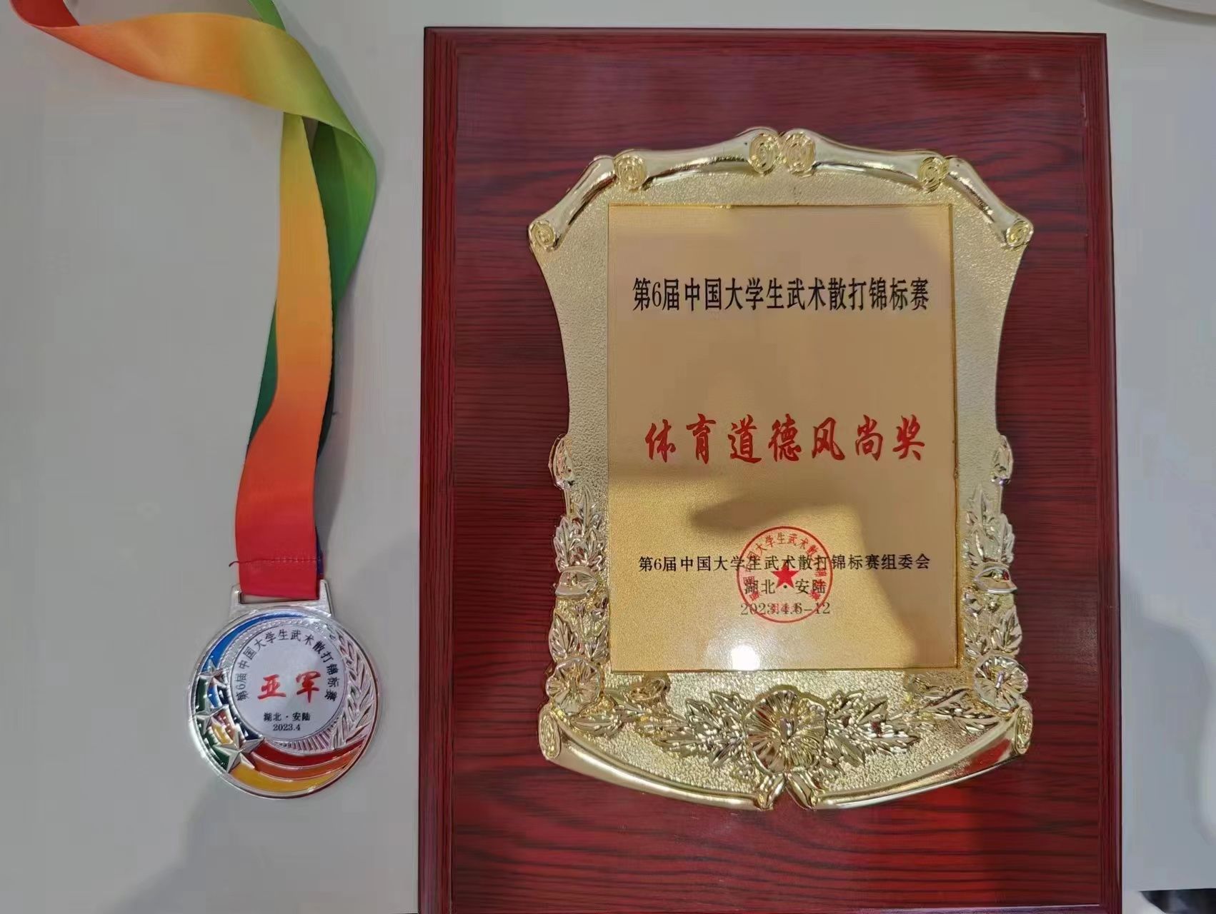 第6届中国大学生武术散打锦标赛4月6-13日在湖北省安陆市举行。我校散打队选派2名运动员参赛,岳岩、刘坤翔老师担任教练。此次赛事中,符壮位同学奋勇拼搏,最终获得男子甲B组64公斤级亚军!同时,我校散打队荣获体育道德风尚奖运动队称号。赛后,学校吕治国书记、刘湘洪校长以电话的形式向教练员和运动员表示祝贺。