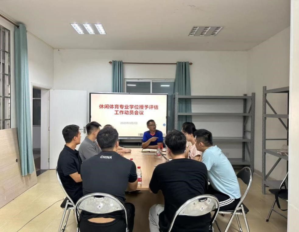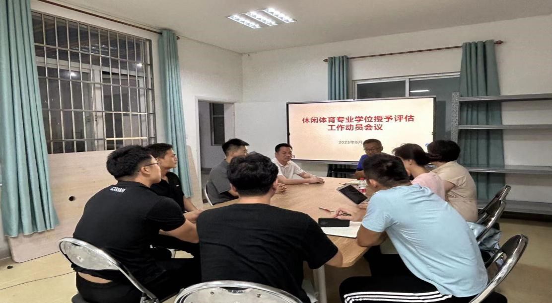 2023年9月2日下午,体育学院休闲体育系召开新办专业学士学位授予评估工作动员会议,会议由休闲体育系覃兴耀主任主持,出席人员有体育学院周军副院长、休闲体育系梁冬副主任、学位授予评估工作小组成员张小宝、孙一帆、李军、陈小聪、李尚泽、阎家骏。