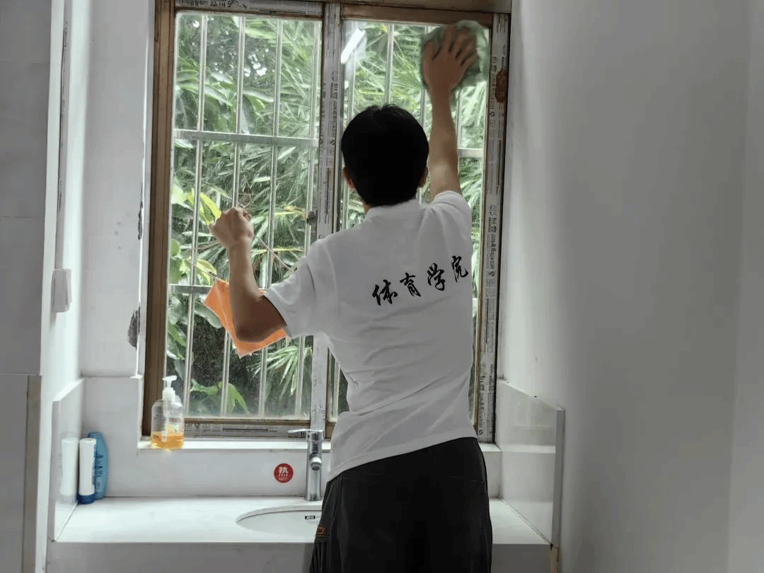 到达敬老院,在与工作人员沟通后,羊芳芳辅导员和青年志愿者协会会长焦文组织同学们分工打扫敬老院,大家有序进行清扫落叶、擦拭房间窗户、清理廊道卫生等任务。
