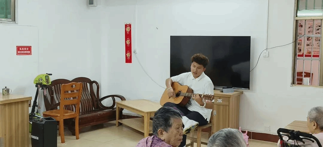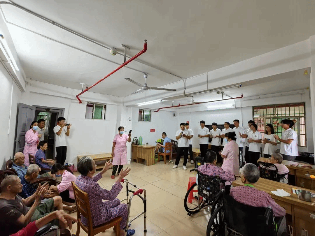 随后,同学们为爷爷奶奶表演节目,唱响海南歌谣的乐调曲子,带动他们热情合唱革命老歌,还跳起欢快的舞步,敬老院充斥着愉悦的氛围。