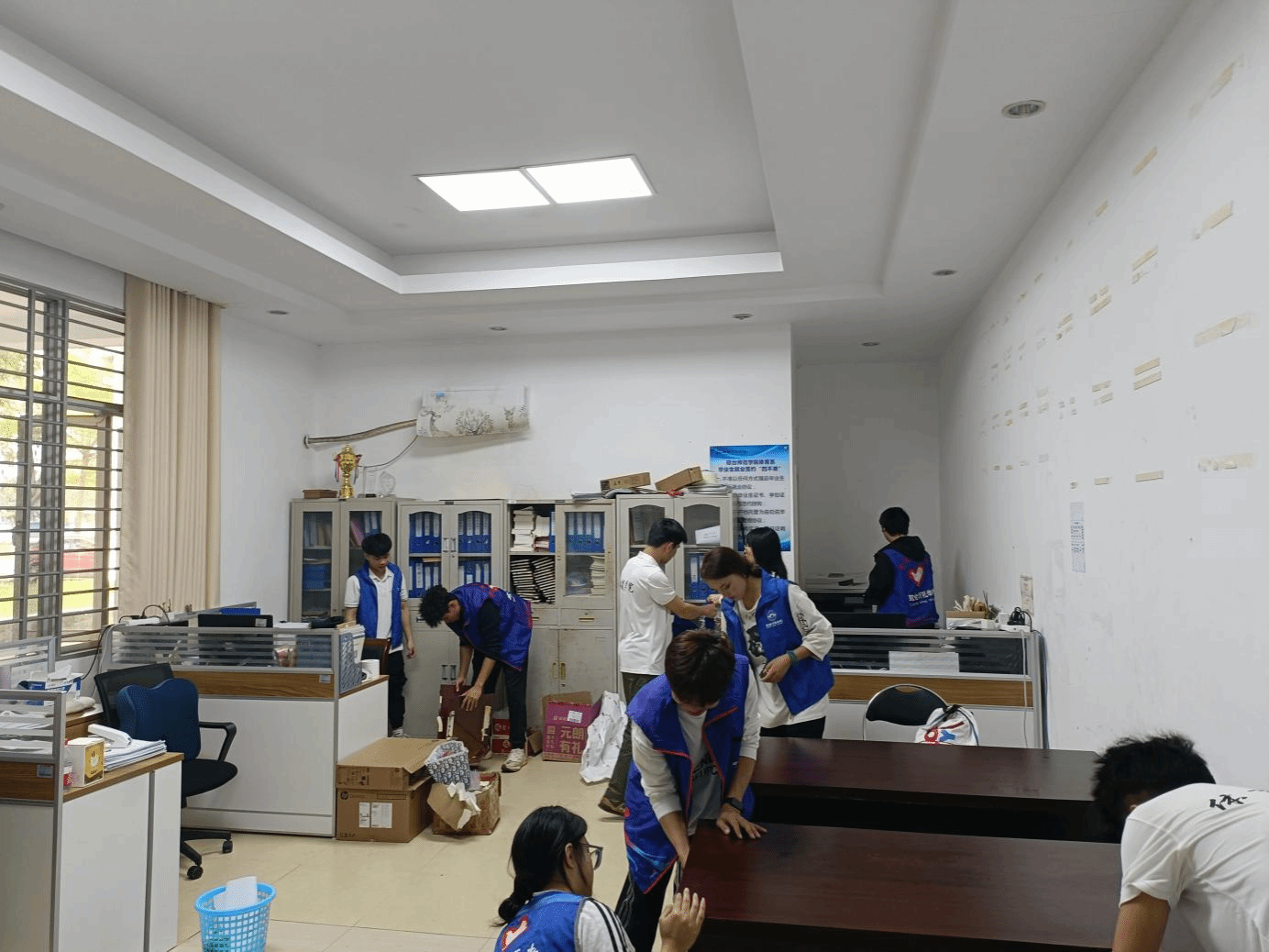 活动过程中,志愿者们积极的进行清洁活动,展现了“奉献、友爱、互助、进步”的志愿精神。他们分工明确,整理资料、搬运物品、扫地、物品归类等。虽然打扫过程很辛苦,但志愿者们干劲十足,表现积极,充分展示了我院志愿者的精神风貌,出色地完成了打扫任务。